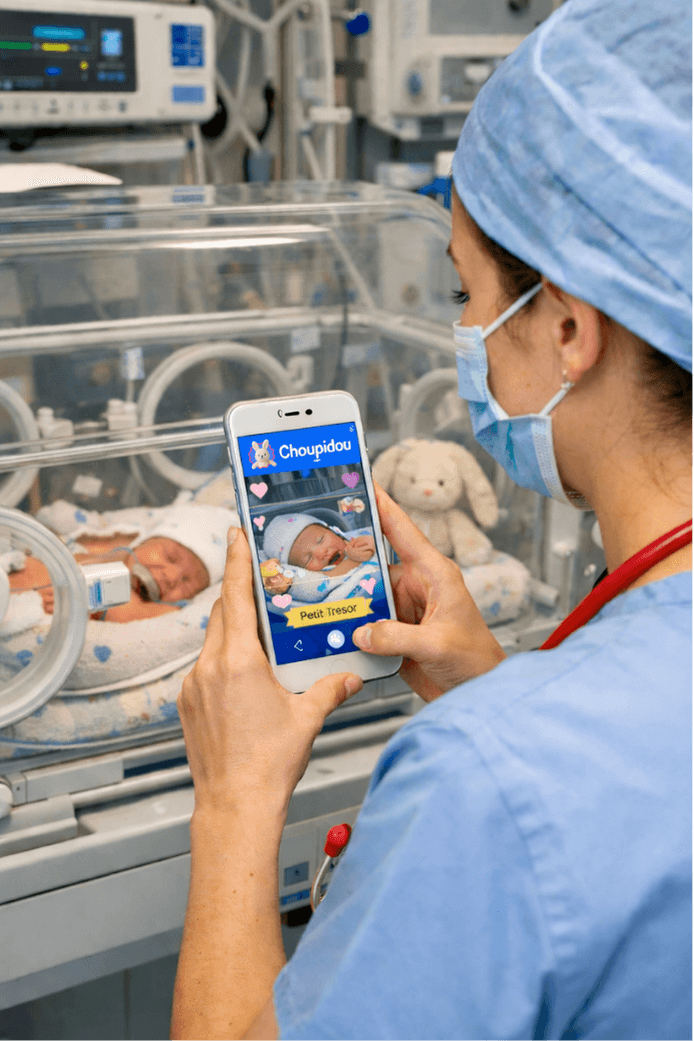 Choupidou accompagne les équipes hospitalières dans le partage sécurisé d’images et vidéos avec les familles d’enfants hospitalisés.